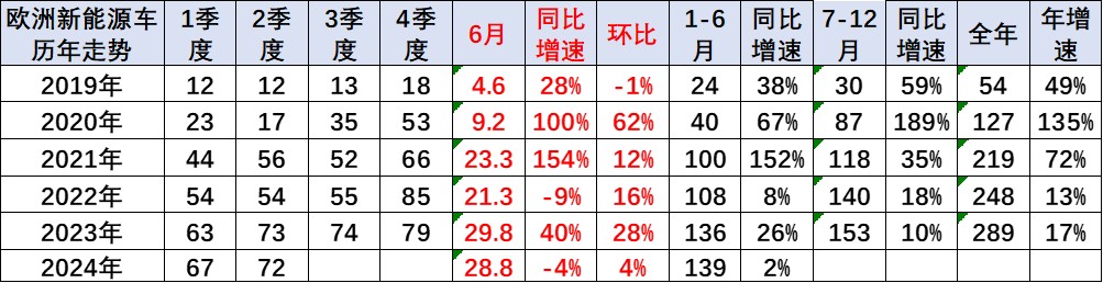 Currently, early adopters and environmentalists in Europe and America have already purchased electric vehicles. However, electric vehicle manufacturers now face skepticism from mainstream buyers, and even with the use of autonomous driving technology, the increase in sales penetration has not met expectations European new energy passenger car sales from January to June this year totaled 1.39 million units, with an increase of only 30,000 units compared to the same period last year, up 2%. In June, European new energy passenger car sales reached 288,000 units, a decrease of 4%. European consumers are facing high interest rates, slowing economic growth, gradual phasing out of financial subsidies for new energy vehicles, and insufficient charging infrastructure, which continue to be important factors constraining their widespread development, leading to weak market demand.