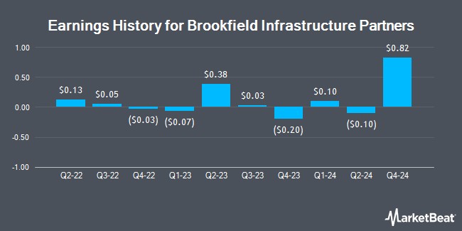 Brookfield Infrastructure Partners (NYSE:BIP - Get Free Report) TSE: BIP.UN issued its earnings results on Thursday. The utilities provider reported ($0.10) earnings per share for the quarter, missing the consensus estimate of $0.70 by ($0.80), Zacks reports. The company had revenue of $5.14 billion for the quarter, compared to analyst estimates of $1.91 billion. Brookfield Infrastructure Partners had a return on equity of 0.50% and a net margin of 0.82%. The company's quarterly revenue was up 20.7% compared to the same quarter last year. During the same quarter in the previous year, the company posted $0.72 earnings per share.