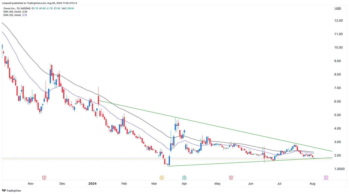 Canoo (GOEV) stock price has continued in a strong freefall this year as concerns about the Electric Vehicle (EV) companies continued. It has dropped by almost 70% this year and by almost 90% in the past 12 months, giving it a market cap of over $143 million.