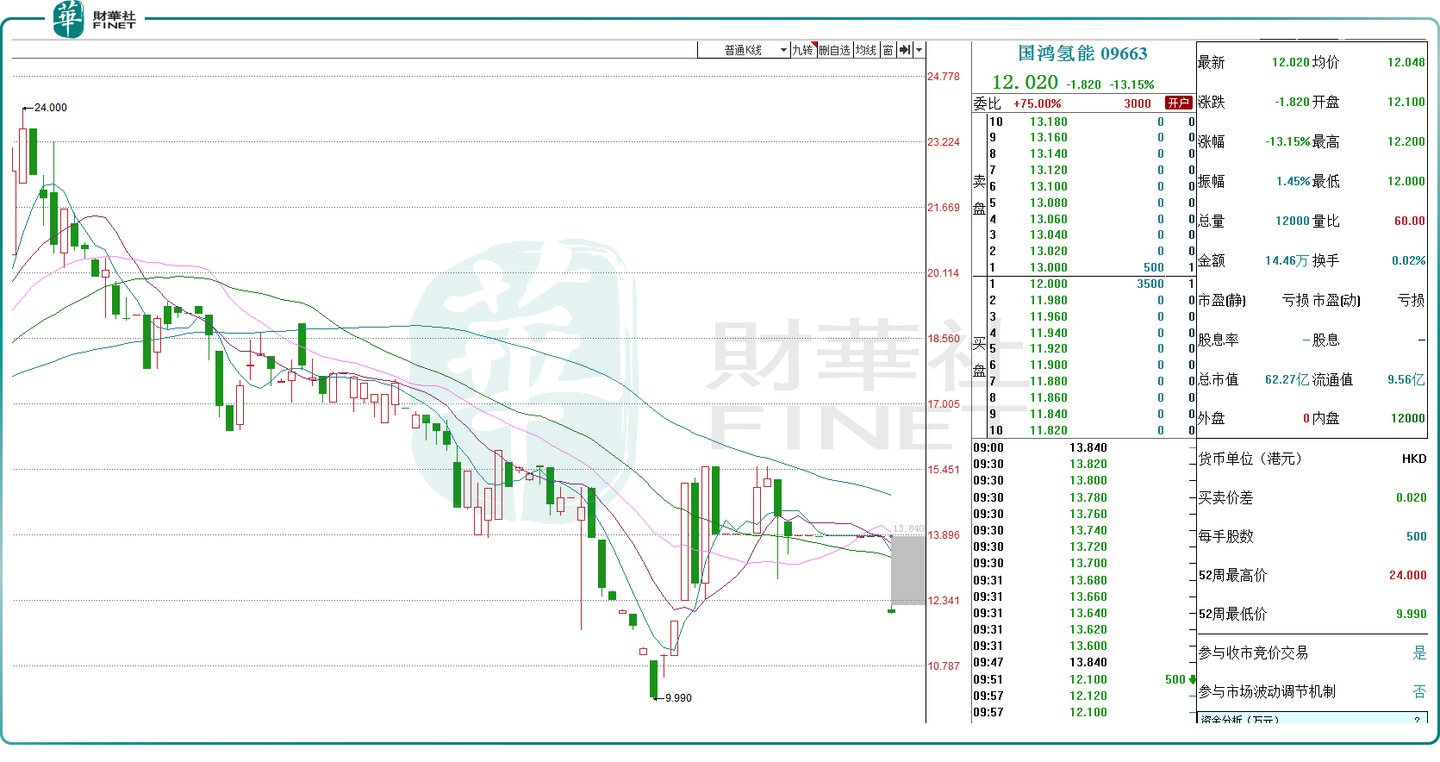 On August 5th, Sinosynergy (09663.HK), known as the "second stock of hydrogen fuel cells" in the domestic market, plummeted by 13.15%, currently trading at HKD 12.02 per share, with a market value of HKD 6.227 billion.