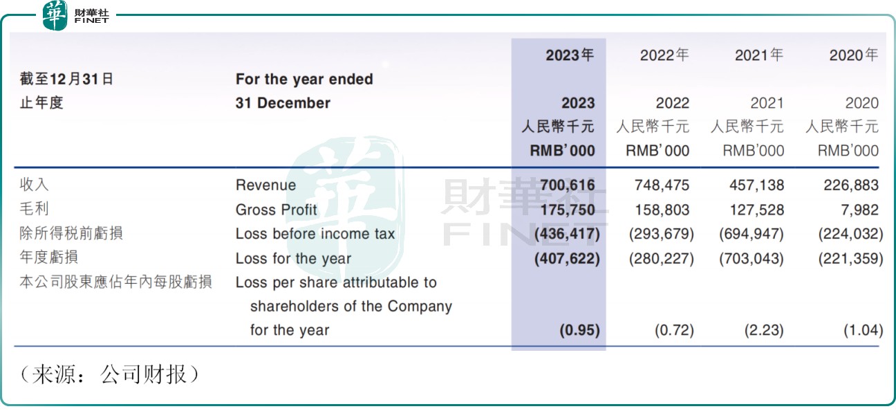 Data shows that from 2020 to 2023, the company's revenue was RMB 227 million, RMB 457 million, RMB 748 million, and RMB 701 million respectively, while the corresponding annual losses were RMB 221 million, RMB 703 million, RMB 280 million, and RMB 408 million. Profitability has always been a major issue for the company