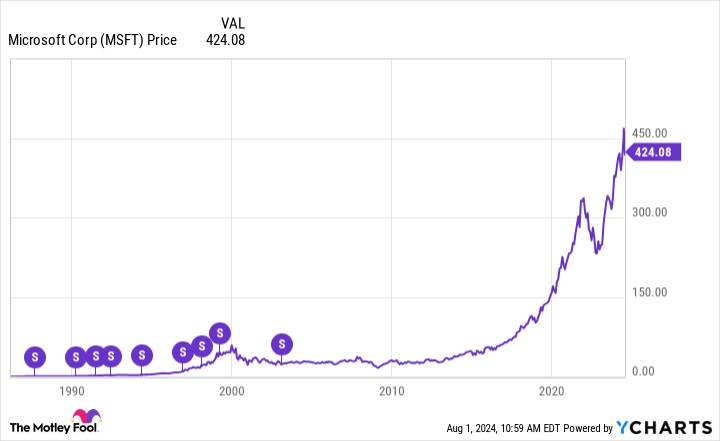 科技巨頭 微軟(MSFT -3.27%)已經存在很長時間了,所以對股票分拆並不陌生。該公司從上世紀 80 年代末到 21 世紀初進行了九次股票分拆。但自那時以來呢?沒有了。如今,微軟股票的交易價格超過 400 美元。雲計算和人工智能(AI)的增長推動股價創下新高,並可能在長期內繼續增長。