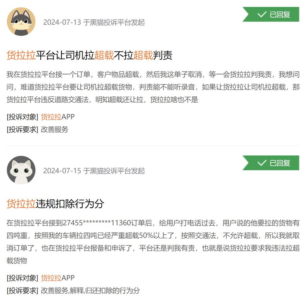 In fact, tolerating overloading has always been a chronic issue for Lalamove. Complaints on consumer complaint platform Black Cat Complaints can be traced back to as early as 2022, with over 600 related complaints. Many drivers have reported that after refusing to overload, Lalamove would deduct their behavior points.