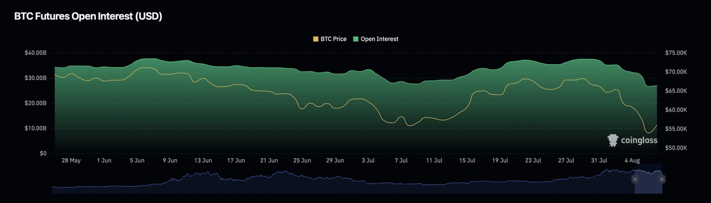 這種背離通常表明,雖然開放了更多合約,但交易的總價值卻下降,這表明市場動量正在降温或交易者情緒發生轉變。