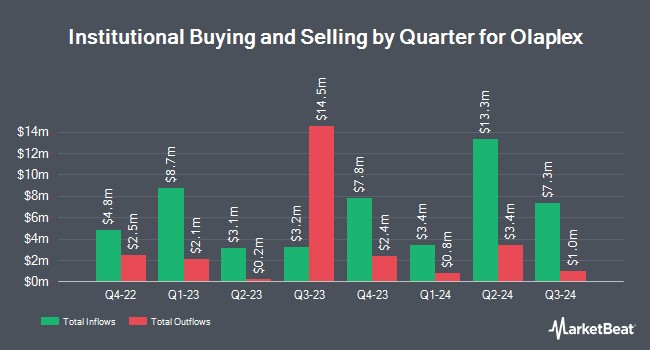 Several other institutional investors and hedge funds have also recently added to or reduced their stakes in OLPX. Vanguard Group Inc. increased its position in Olaplex by 8.4% in the 1st quarter. Vanguard Group Inc. now owns 11,935,003 shares of the company's stock valued at $22,915,000 after acquiring an additional 929,693 shares during the period. Sanders Morris Harris LLC acquired a new position in Olaplex in the 1st quarter valued at approximately $660,000. Allspring Global Investments Holdings LLC increased its position in Olaplex by 119,729.9% in the 4th quarter. Allspring Global Investments Holdings LLC now owns 336,722 shares of the company's stock valued at $855,000 after acquiring an additional 336,441 shares during the period. Norden Group LLC acquired a new position in Olaplex in the 1st quarter valued at approximately $563,000. Finally, PEAK6 Investments LLC acquired a new stake in shares of Olaplex during the first quarter worth $232,000. 87.37% of the stock is currently owned by institutional investors and hedge funds.