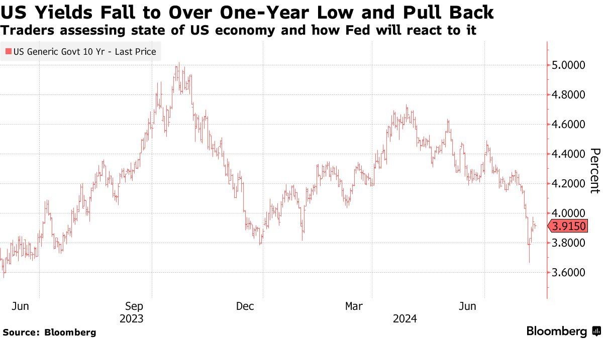 在上週疲軟的美國 7 月非農就業報告公佈後,投資者對美國經濟前景更加擔憂,這導致過去幾天債券市場出現劇烈波動。美債最初強勁的反彈後來失去了動力,交易員們現在正在尋找有關美國及美聯儲將如何反應的更多線索。