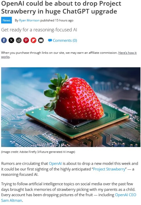 而 Open AI 的 CEO 奧特曼也曾在社交媒體上曬出夏日花園中的草莓,這不禁讓人浮想聯翩。