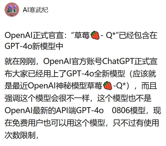 OpenAI officially announces the update of GPT4o! Is the legendary "Strawberry" here?