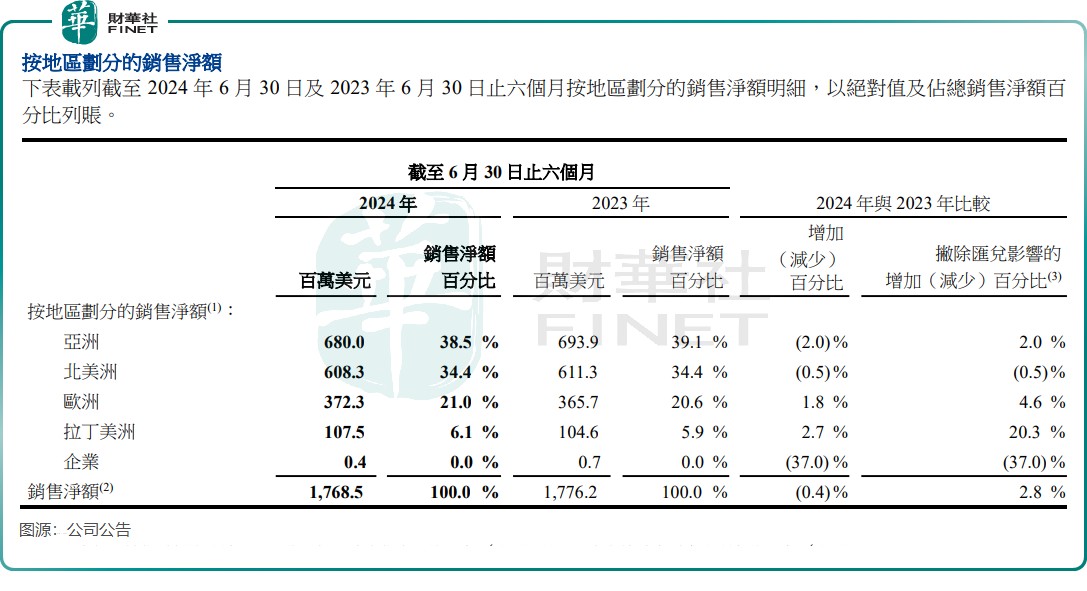 In the first half of this year, net sales from Asia and North America were $680 million and $608 million respectively, down by 2% and 0.5% year-on-year, respectively. Excluding the impact of exchange rates, the Asian market recorded a 2% growth. Sales in Europe and Latin America continued to grow, increasing by 1.8% and 2.7% respectively.