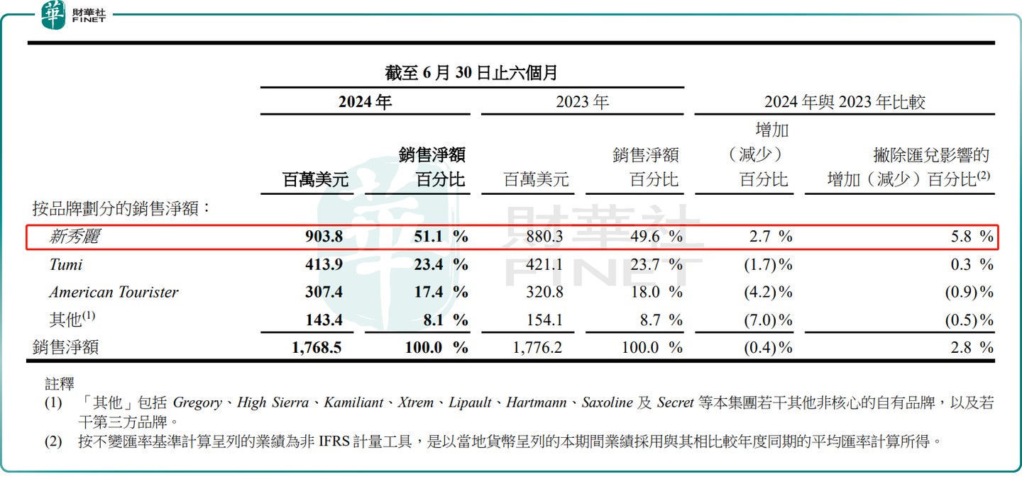 After the market closed on August 14, Samsonite released its performance announcement for the first half of this year, achieving a net sales revenue of USD 1.769 billion, a decrease of 0.4% year-on-year (an increase of 2.8% based on constant exchange rates); the profit attributable to equity holders was USD 164 million, an increase of 7.7% year-on-year; the gross profit margin was 60.2%, up 1.4 percentage points from the same period last year, setting a record for the first half of the year.