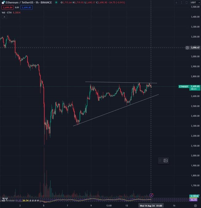The analyst says Ethereum appears to be trading within an ascending triangle pattern, a typically bullish formationformed by a series of higher lows and a horizontal upper trendline that acts as a resistance level.