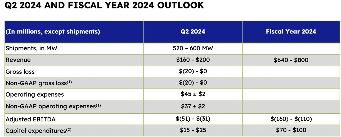 In its Q1 results, the company said that its shipments in Q2 will be between 520 and 600 MW while its revenue will be between $160 million and $200 million. That will be a big drop from the $348 million it made in the same quarter in 2023.