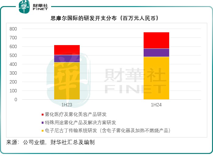 The R&D expenses for the electronic nicotine delivery system still account for the majority of the R&D expenses. However, as shown in the chart below, the expenses for the research and development of atomized medical and beauty products surged in the first half of 2024, increasing by 63.23% annually to 185 million yuan.