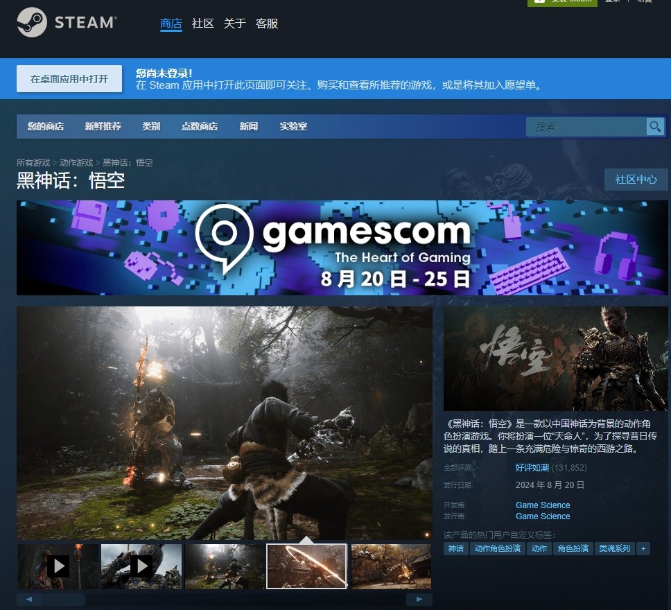 "Black Myth: Wukong" is developed by the Chinese game developer "Game Science" using the Unreal Engine 5, based on the classic novel "Journey to the West," creating an action role-playing game set in a world full of immortals, Buddhas, monsters, and myths. The open pre-load on Tuesday led to a surge in Steam download bandwidth to 70Tbps, breaking the record of 50Tbps set by "Cyberpunk 2077" at the end of 2020.