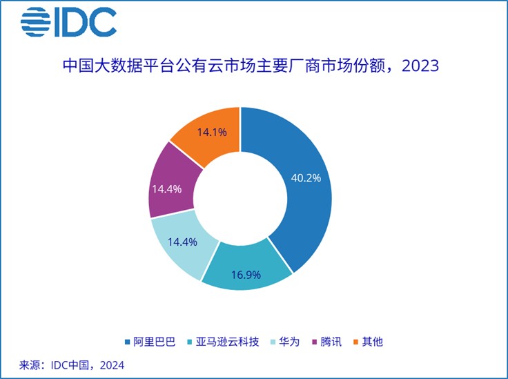 2023 年中國大數據平台整體市場規模達 179.3 億元人民幣,相比 2022 年增長 24.6%。華為以 24.7% 的市場份額佔據整體第一;阿里巴巴以 19.5% 的市場份額佔據整體第二;騰訊 (00700) 位居第三。