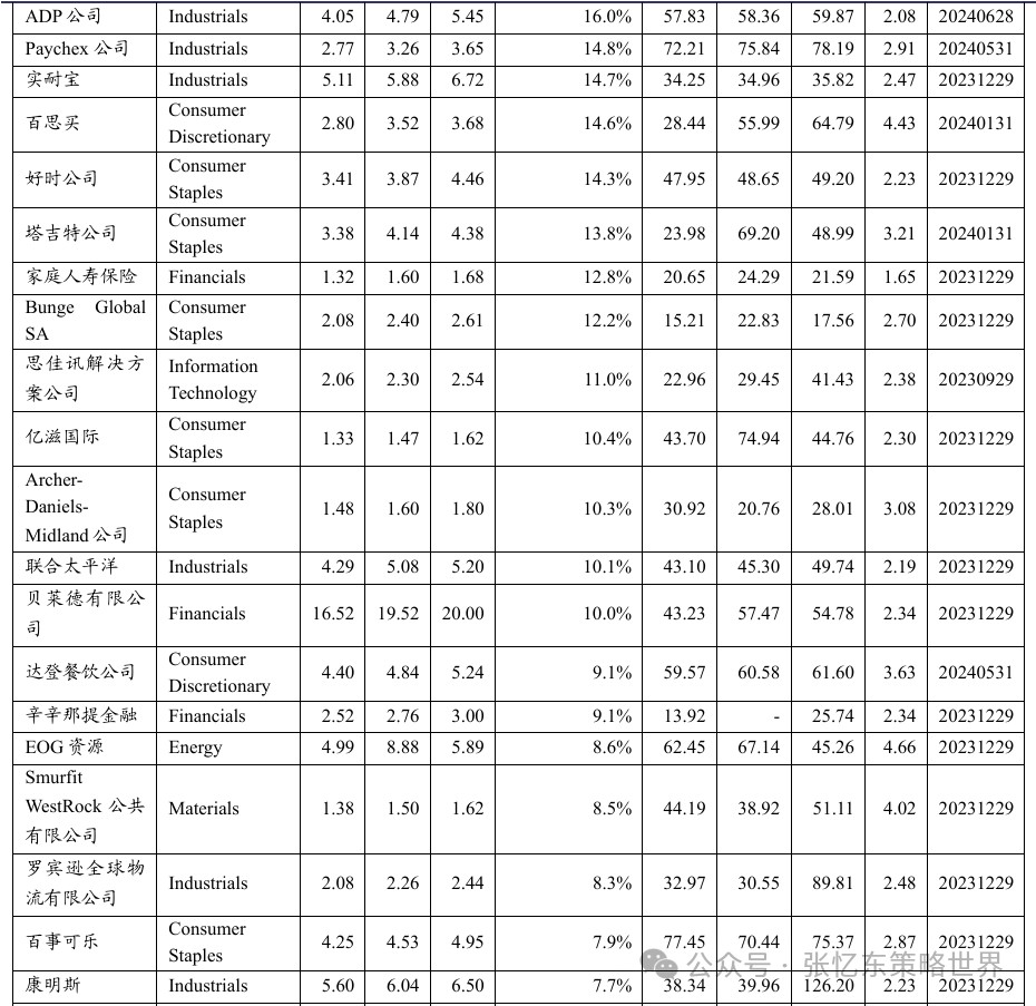 較高的盈利增速也是支撐其高分紅的原因之一。2003 年至 2023 年期間,標普 500 優質高紅利指數成分股 EPS 年複合增速中位數近 8%,其中,2003 年至 2007 年,其 EPS 年複合增速中位數甚至超 16%;2011 年至 2019 年 “低利率” 背景下,其 EPS 年複合增速中位數也能夠達到超過 6% 的水平。