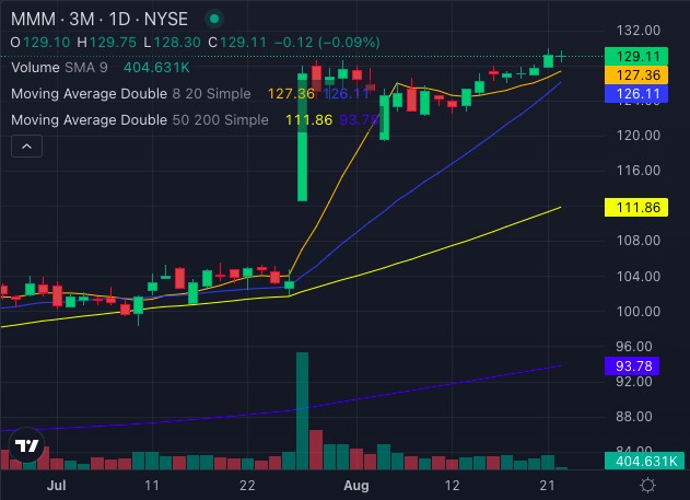 3M's stock is hitting new highs, driven by strong technical indicators and bullish moving averages.