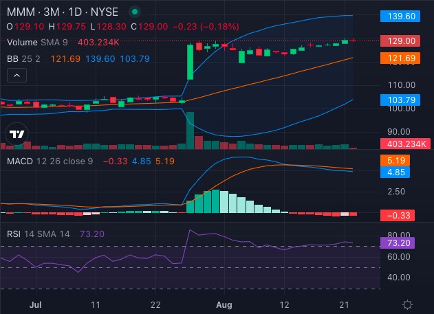 Despite the bullish signals, 3M's Relative Strength Index (RSI) is at 73.20, placing the stock in overbought territory. This suggests that while the stock has performed exceptionally well, it might be ripe for a correction or a period of consolidation.