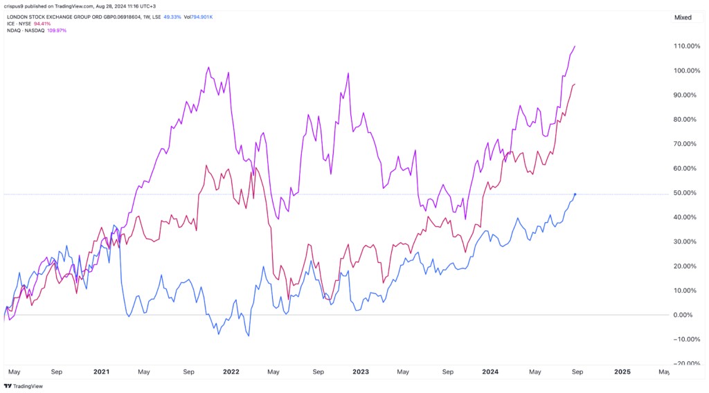 London Stock Exchange stock hits ATH; trails Nasdaq and NYSE