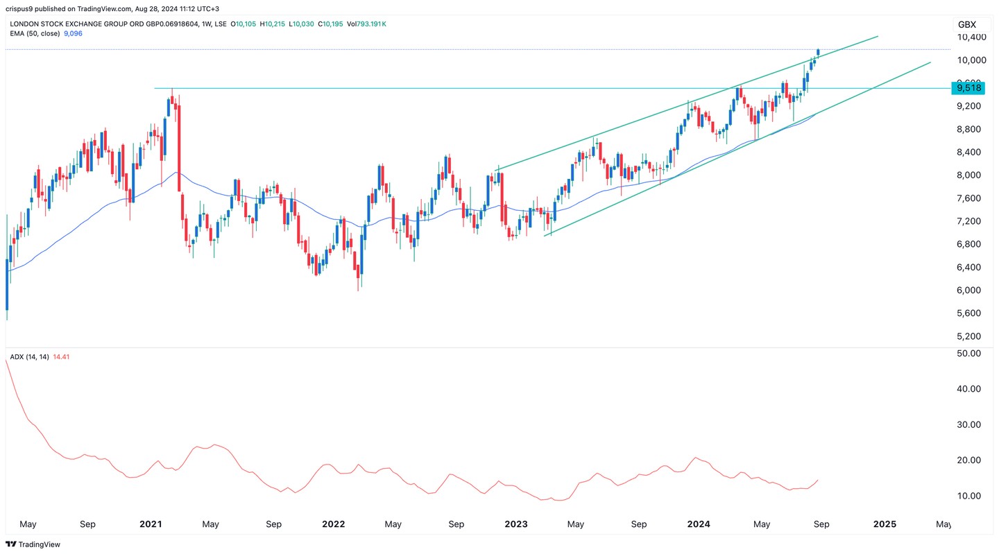 倫敦證券交易所集團(LSEG)股價今年表現不俗,創下歷史新高。今年漲幅超過 12%,超過富時 100 和富時 250 指數。