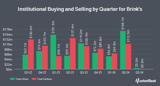 Other institutional investors have also recently modified their holdings of the company. Covestor Ltd increased its position in shares of Brink's by 154.8% during the 1st quarter. Covestor Ltd now owns 316 shares of the business services provider's stock valued at $29,000 after purchasing an additional 192 shares during the last quarter. LRI Investments LLC bought a new position in shares of Brink's during the 1st quarter valued at about $37,000. MFA Wealth Advisors LLC bought a new position in shares of Brink's during the 2nd quarter valued at about $47,000. GAMMA Investing LLC boosted its holdings in Brink's by 119.0% during the 2nd quarter. GAMMA Investing LLC now owns 460 shares of the business services provider's stock valued at $47,000 after acquiring an additional 250 shares during the period. Finally, Mitsubishi UFJ Trust & Banking Corp purchased a new stake in Brink's during the 1st quarter valued at about $49,000. 94.96% of the stock is currently owned by institutional investors.