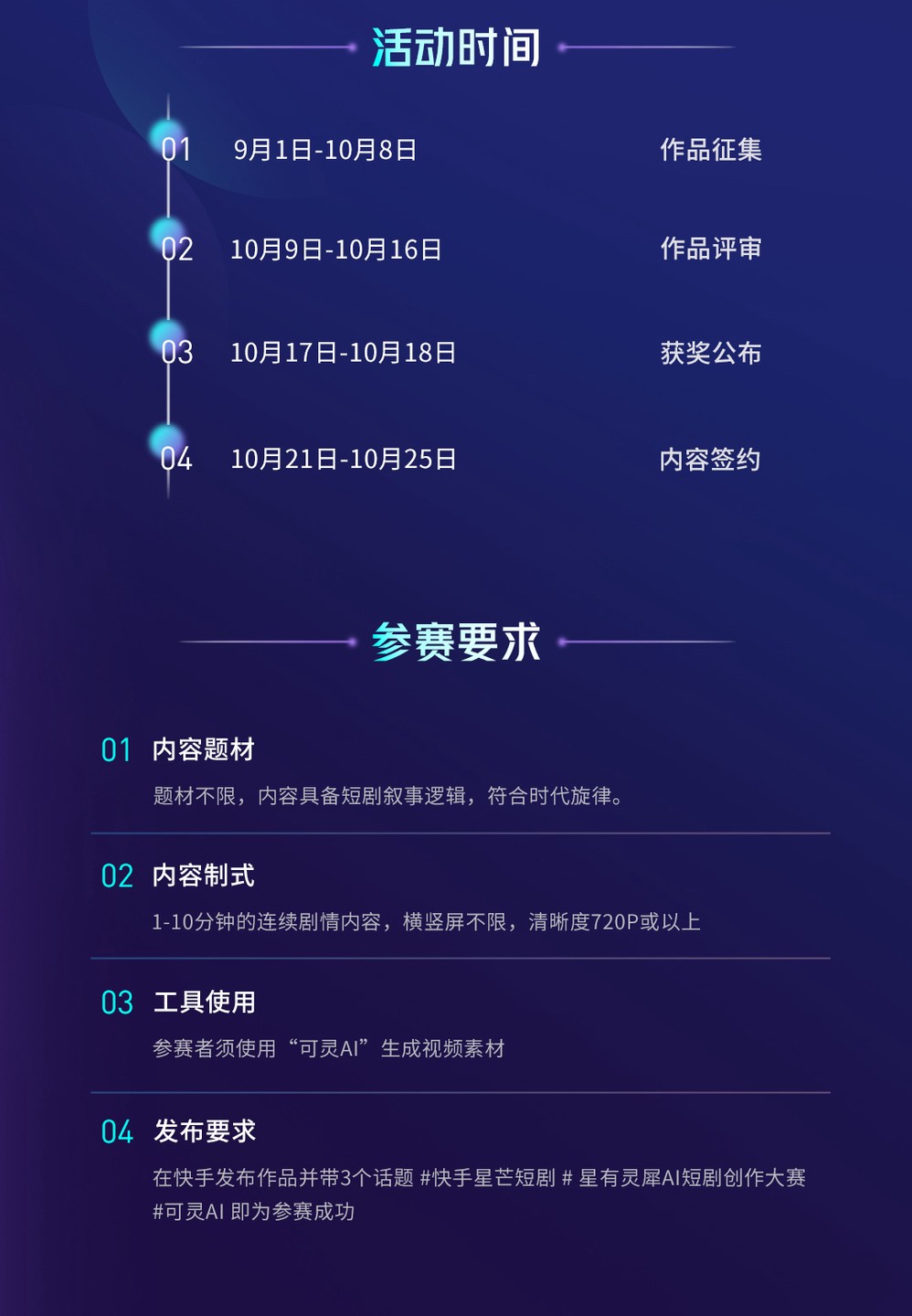 It is reported that the competition will significantly lower the threshold for creation, with higher tolerance for content themes, content formats, and eligibility. In terms of themes, using "Ke Ling AI" to generate video materials and creating short drama content that conforms to narrative logic and the spirit of the times is sufficient; in terms of format, whether horizontal or vertical, a clear 720P or higher resolution continuous drama of 1-10 minutes is acceptable; in terms of eligibility, participating successfully by using the hashtags #KuaishouXingmangShortDrama, #XingYouLingXiAIShortDramaCreationCompetition, #KeLingAI to publish works on Kuaishou.