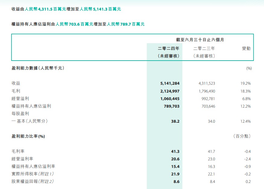 8 月 12 日,361 度正式對外公佈 2024 年上半年財報。數據顯示,今年上半年 361 度營收 51.4 億,同比增長 19.2%;權益持有人應占溢利 7.9 億,同比增長 12.2%,毛利率為 41.3%。