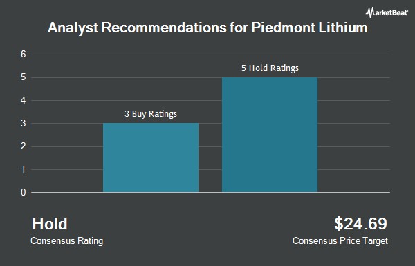 Shares of Piedmont Lithium Inc. (NASDAQ:PLL - Get Free Report) have received an average recommendation of "Hold" from the eight brokerages that are covering the firm, Marketbeat reports. Five research analysts have rated the stock with a hold recommendation and three have given a buy recommendation to the company. The average 1 year price objective among analysts that have covered the stock in the last year is $25.61.