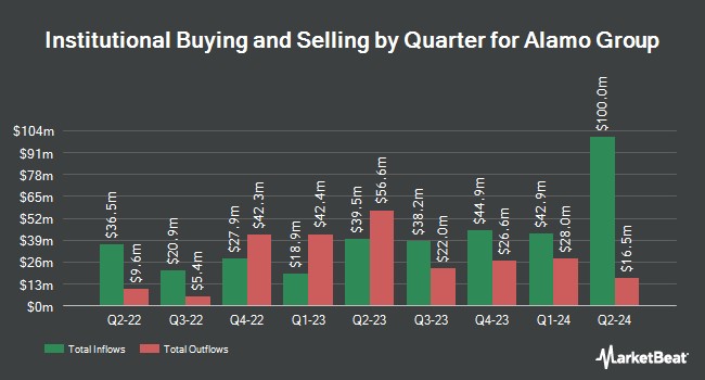 Other institutional investors have also modified their holdings of the company. Guidance Capital Inc. boosted its stake in Alamo Group by 12.5% during the 2nd quarter. Guidance Capital Inc. now owns 2,348 shares of the industrial products company's stock valued at $406,000 after purchasing an additional 261 shares during the period. Natixis Advisors LLC raised its holdings in shares of Alamo Group by 17.7% during the second quarter. Natixis Advisors LLC now owns 77,310 shares of the industrial products company's stock valued at $13,375,000 after buying an additional 11,618 shares during the last quarter. nVerses Capital LLC acquired a new position in shares of Alamo Group during the second quarter worth approximately $52,000. Azzad Asset Management Inc. ADV acquired a new position in shares of Alamo Group during the second quarter worth approximately $948,000. Finally, Panagora Asset Management Inc. grew its holdings in Alamo Group by 5.9% in the 2nd quarter. Panagora Asset Management Inc. now owns 15,904 shares of the industrial products company's stock worth $2,751,000 after buying an additional 882 shares in the last quarter. Institutional investors own 92.36% of the company's stock.