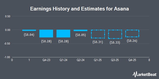 Asana (NYSE:ASAN - Get Free Report) last posted its quarterly earnings results on Tuesday, September 3rd. The company reported ($0.05) earnings per share (EPS) for the quarter, topping the consensus estimate of ($0.08) by $0.03. The firm had revenue of $179.21 million for the quarter, compared to analyst estimates of $177.68 million. Asana had a negative net margin of 38.55% and a negative return on equity of 77.48%. The company's quarterly revenue was up 10.3% compared to the same quarter last year. During the same period in the prior year, the firm posted ($0.31) earnings per share. Equities research analysts expect that Asana will post -1.05 earnings per share for the current fiscal year.