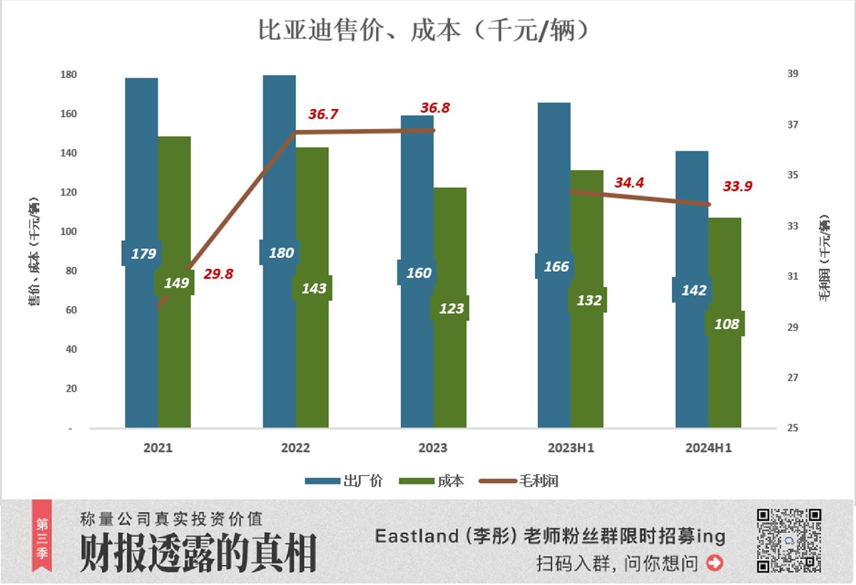 In 2023, BYD's average selling price fell to 160,000 yuan per vehicle, with almost unchanged gross profit per vehicle;