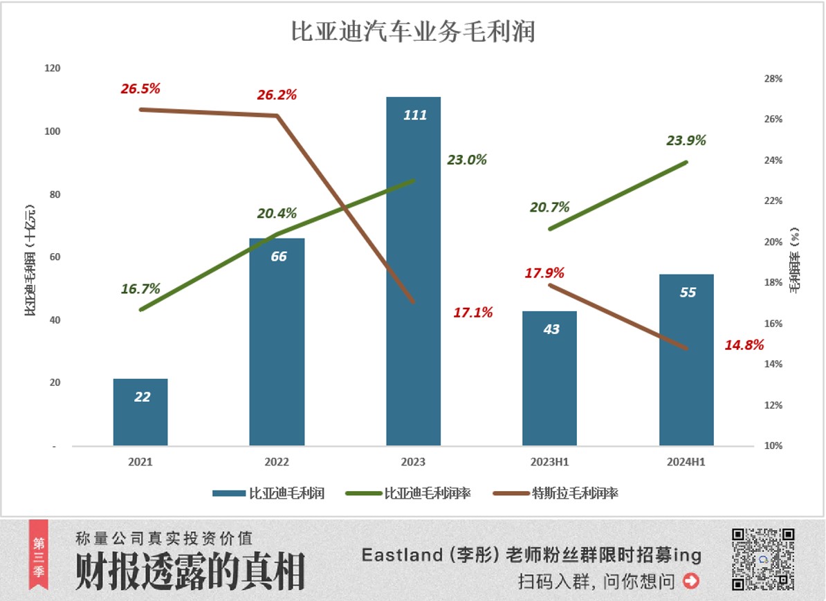 However, Tesla's sales are only half of BYD's, with a 9.1 percentage point lower gross profit margin.