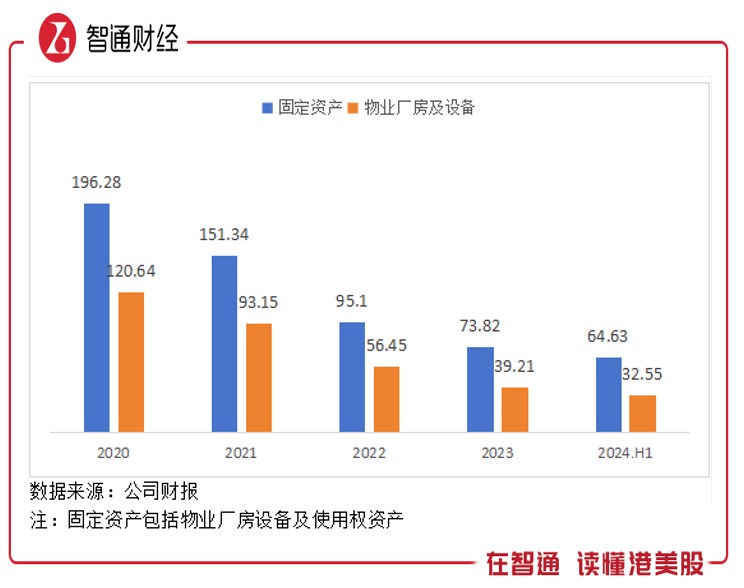 值得注意的是,在海底撈經營壓力日增的同時,其資產負債表也出現了 “異動”——最大變化是物業廠房及設備的大幅減少,這和該公司每年大幅計提折舊攤銷有關。可以看到,該公司固定資產(物業廠房及設備和使用權資產)每年都在下降,從 2020 年的 196.28 億元降至 64.63 億元,而物業廠房設備則從 120.64 億元降至 32.55 億元,降幅超過 70%。