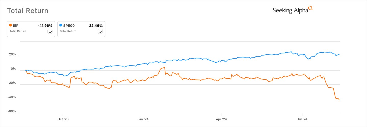 Most notably, IEP has dropped in the last four consecutive weeks and is down by over 73% from its highest point in 2023. This crash has brought its market cap from last year’s high of over $18 billion to $4 billion.