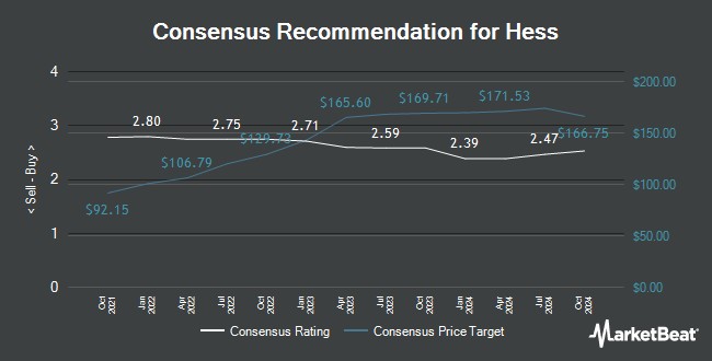 Hess (NYSE:HES - 獲取免費報告) 的價格目標在週五發佈的研究報告中被 Piper Sandler 的分析師從 173.00 美元下調至 167.00 美元。Piper Sandler 的價格目標表明,相較於公司當前股價,可能有 29.40% 的上漲空間。
