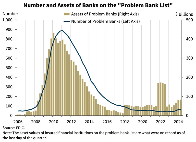 The agency’s Second Quarter 2024 Quarterly Banking Profile shows the number of lenders on its “Problem Bank List” rose quarter-on-quarter from 63 to 66.
