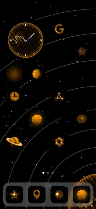 Here, you’ll find themes (collections of wallpapers, widgets, and icons) where icons become a part of the background, like one where icons set to Large mode become planets in the solar system, or another where small icons become wall decor.