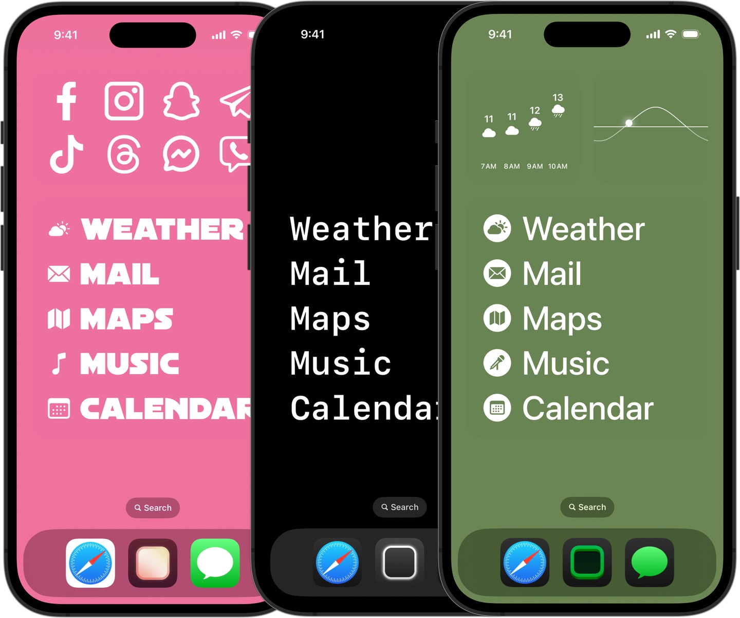 Instead, you can choose to install widgets that spell out in text the various apps you may want to access, like Weather, Mail, Maps, Music, and Calendar. You could use these alone on the screen or alongside other widgets. You could even opt to remove all the icons from your bottom dock for a less cluttered look.