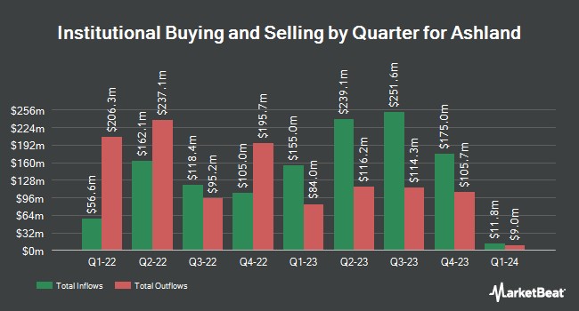 其他大型投資者最近也調整了他們對該公司的持股。Commerce Bank 在第四季度將其對 Ashland 的持股增加了 2.4%。Commerce Bank 現在擁有 4725 股這家基礎材料公司的股票,價值 39.8 萬美元,上季度購入了額外的 111 股。Vanguard Personalized Indexing Management LLC 在第二季度將其對 Ashland 的持股增加了 2.1%。Vanguard Personalized Indexing Management LLC 現在擁有 7295 股這家基礎材料公司的股票,價值 68.1 萬美元,上季度購入了額外的 149 股。GAMMA Investing LLC 在第一季度將其對 Ashland 的持倉增加了 122.4%。GAMMA Investing LLC 現在擁有 278 股這家基礎材料公司的股票,價值 2.7 萬美元,上季度購入了額外的 153 股。Fulton Bank N.A.在第一季度將其對 Ashland 的持股增加了 5.8%。Fulton Bank N.A.現在擁有 3358 股這家基礎材料公司的股票,價值 32.7 萬美元,上季度購入了額外的 185 股。最後,北卡羅來納州財務主管在第四季度將其對 Ashland 的持股增加了 1.0%。北卡羅來納州財務主管現在擁有 2.1 萬股這家基礎材料公司的股票,價值 177.3 萬美元,上季度購入了額外的 210 股。該股票的 93.95% 由機構投資者和對沖基金持有。