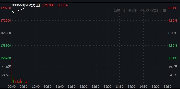 消息公佈後,SK 海力士股價持續上漲,截至發稿大漲超 8%。