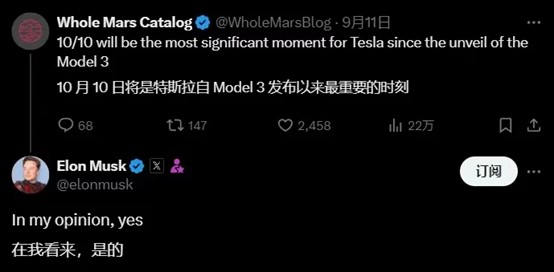 However, an important piece of the Tesla car revolution puzzle - the Robotaxi business for autonomous driving, has been all talk and no action for many years. After multiple delays, Elon Musk confirmed a clearer timetable at the July earnings call this year, Tesla will hold a Robotaxi unveiling event on October 10. On September 26, Tesla officially released a teaser poster for the event.