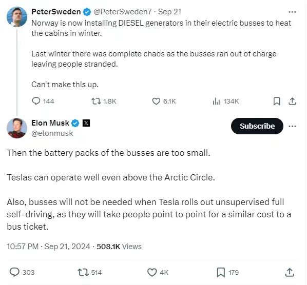 Musk stated that the fare for Tesla's autonomous taxi will be similar to a bus ticket