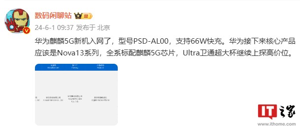 唯一稱得上實質性的,也就是微博博主曾在 6 月透露,nova 13 全系標配麒麟 5G 芯片,Ultra 衞通超大杯繼續上探高價位。