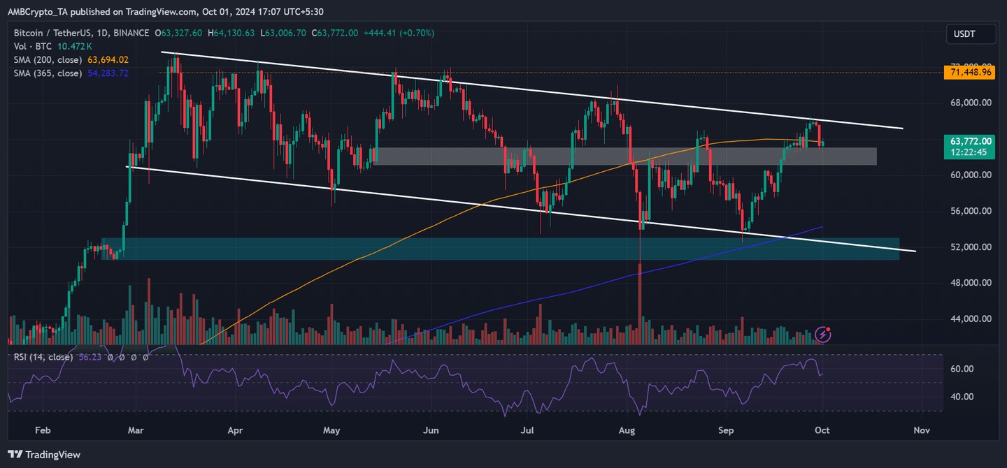 比特幣 [BTC] 在過去七個月內一直在 60,000 美元至 70,000 美元之間盤整。儘管價格走勢乏味,但當前的比特幣價值仍然是一個歷史上看漲的第四季度前的絕佳買入機會。