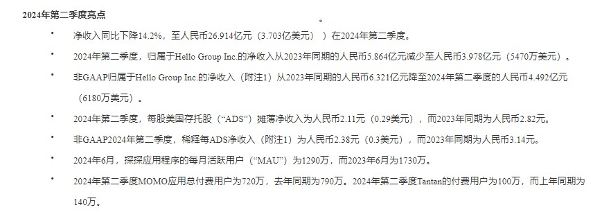 再看到今年上半年的成績單,總收入下滑 11.83%%,直播收入繼續下滑 15.8%,增值服務下滑 7.7%,淨利潤大幅下滑 58%(進行了一次性非現金税收撥備)。同時,月活和付費用户都在持續下滑。探探的月活大幅下降 440 萬到 1290 萬,付費用户減少 40 萬至 100 萬。陌陌的付費用户減少 70 萬至 720 萬。