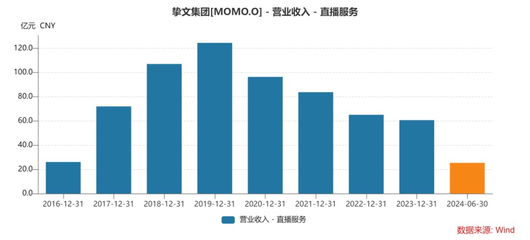 In the interim report this year, there has been a slight change in the main business structure, with the proportion of value-added services exceeding 50% for the first time, and the proportion of live services falling below 50% for the first time.