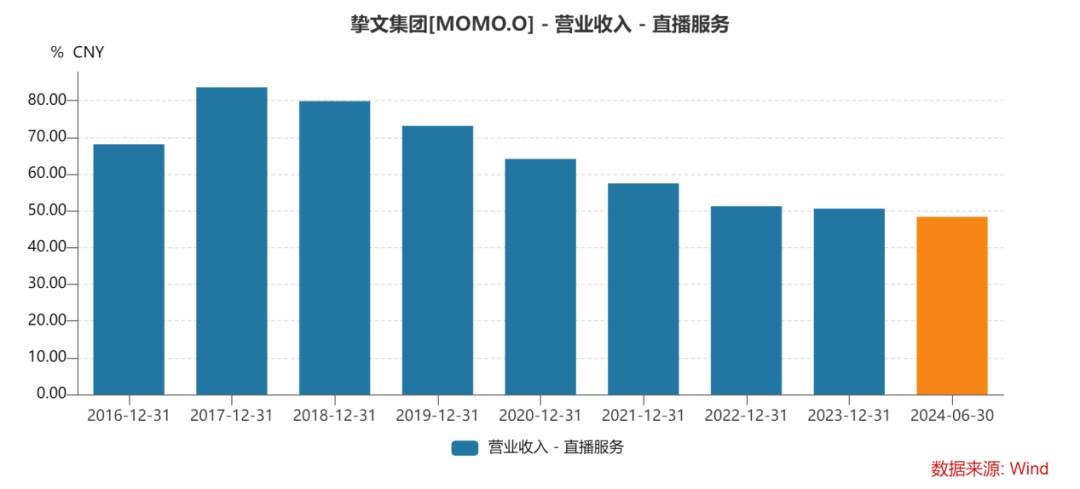 到今年中報,主營結構有點變化,增值服務佔比首次超過 50%,直播服務的佔比首次跌破 50%。