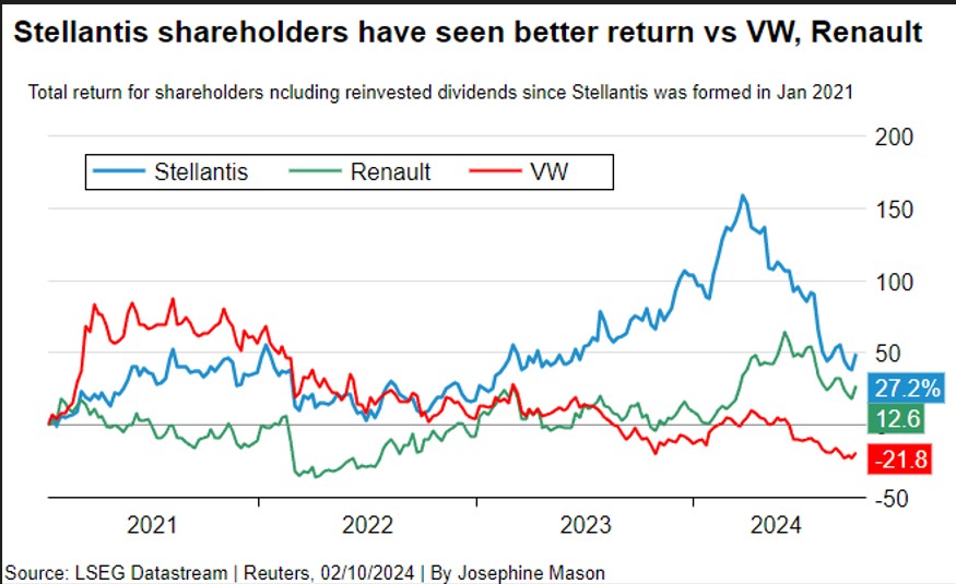 作為克萊斯勒、Jeep、菲亞特、雪鐵龍和標緻品牌的所有者的 Stellantis 股價今年已下跌超過 43%,成為歐洲汽車股中表現最差的股票。