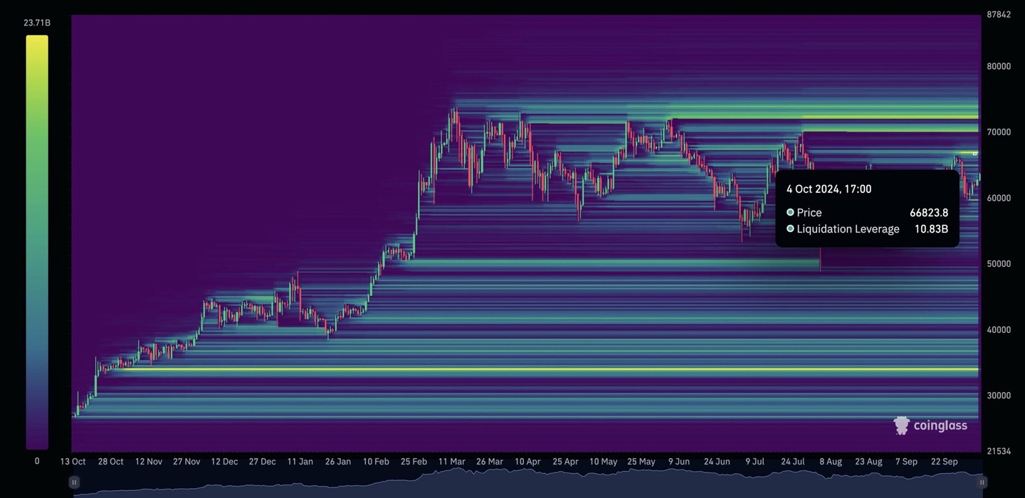 At the $66,200 level, $10 billion in short positions are set to be liquidated, which will effectively convert into spot buys.