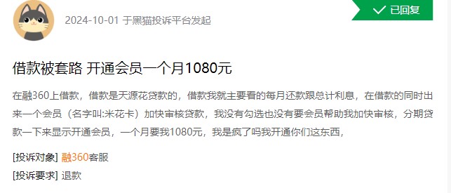 Second, high guarantee fees, management fees, and membership fees. Based on user complaints, borrowing 9,000 yuan incurred over 1,800 yuan in guarantee fees, borrowing 15,886.03 yuan incurred 3,133.49 yuan in guarantee fees, indicating that the proportion of guarantee fees on the Rong 360 platform is over 20% Another user complained that in the case where the user did not open a membership, there was actually a monthly membership fee of up to 1080 yuan in the repayment process.